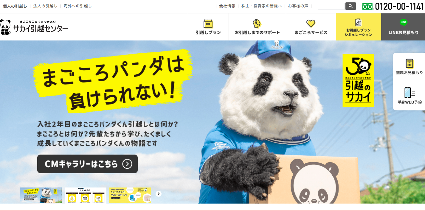 引越しのサカイ全国対応プラン製なので、プランによって変わるプランによって料金が変わるので、選びやすい8:00〜19:00受付0120-00-1141