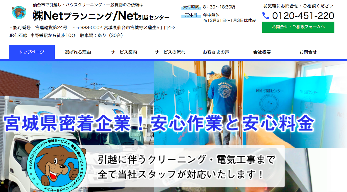NET引越しセンター仙台市のみ対応問い合わせで、品物の量やプランによって変わる引越し侍の比較業者で、一番安い業者8時半〜18時半受付0120-451-220