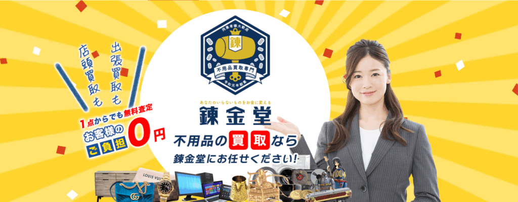 錬金堂は、関東・中部・北海道など広く展開する買取業者です。家具や家電、ブランド品から趣味の道具まで、幅広い品目に対応し、他店で断られたものでも、一点ずつ丁寧に査定してくれます。