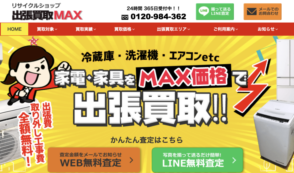 2位:リサイクルショップ出張買取MAX|大型家電の取り外し・搬出まで無料対応