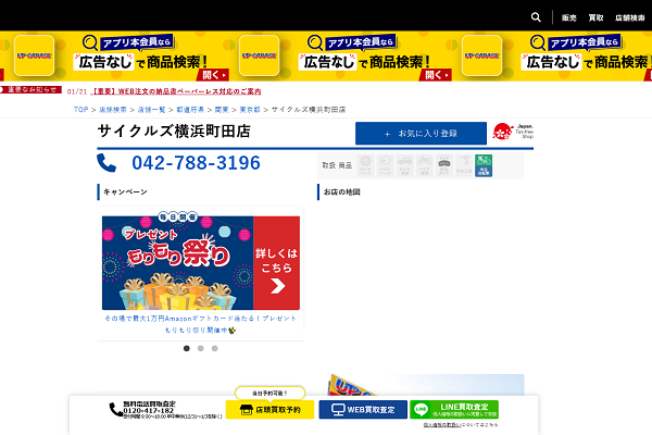 | 買取マクサス横浜支店 | 自転車のリサマイ 横浜店 | サイクルパラダイス | バイチャリ 横浜戸塚店 | サイクルズ 横浜町田店 | |