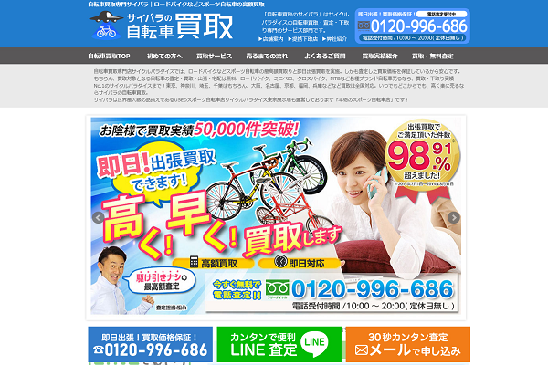 上記の業者は、さまざまな自転車を買取しており、出張買取・宅配買取のほかには店頭買取に対応しています。
